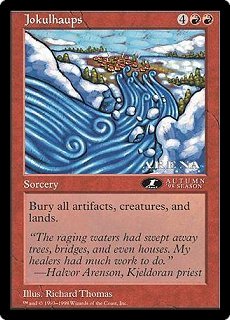 | JOKULHAUPS 4RR Sorcery Bury all artifacts, creatures, and lands. "The raging waters had swept away trees, bridges, and even houses. My healers had much work to do." —Halvor Arenson, Kjeldoran priest |
