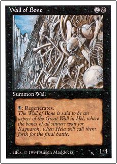 WALL OF BONE 2B Summon Wall (1/4) B: Regenerates. The Wall of Bone is said to be an aspect of the Great Wall in Hel, where the bones of all sinners wait for Ragnarok, when Hela will call them forth for the final battle. |